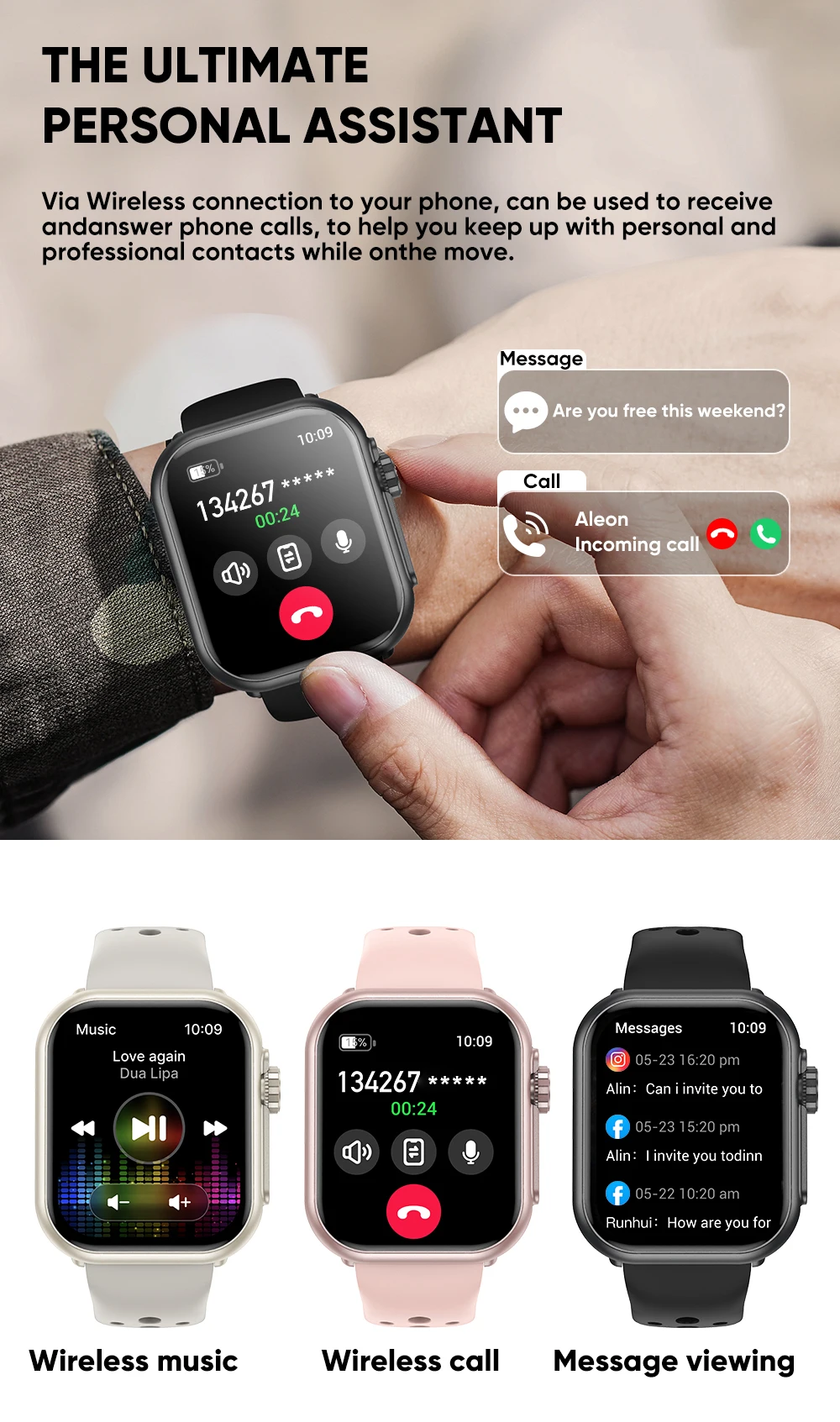 1.Stay connected on the go: With a smartwatch, you can receive notifications and messages without having to pull out your phone. This is particularly useful when you're in a meeting, driving, or exercising.